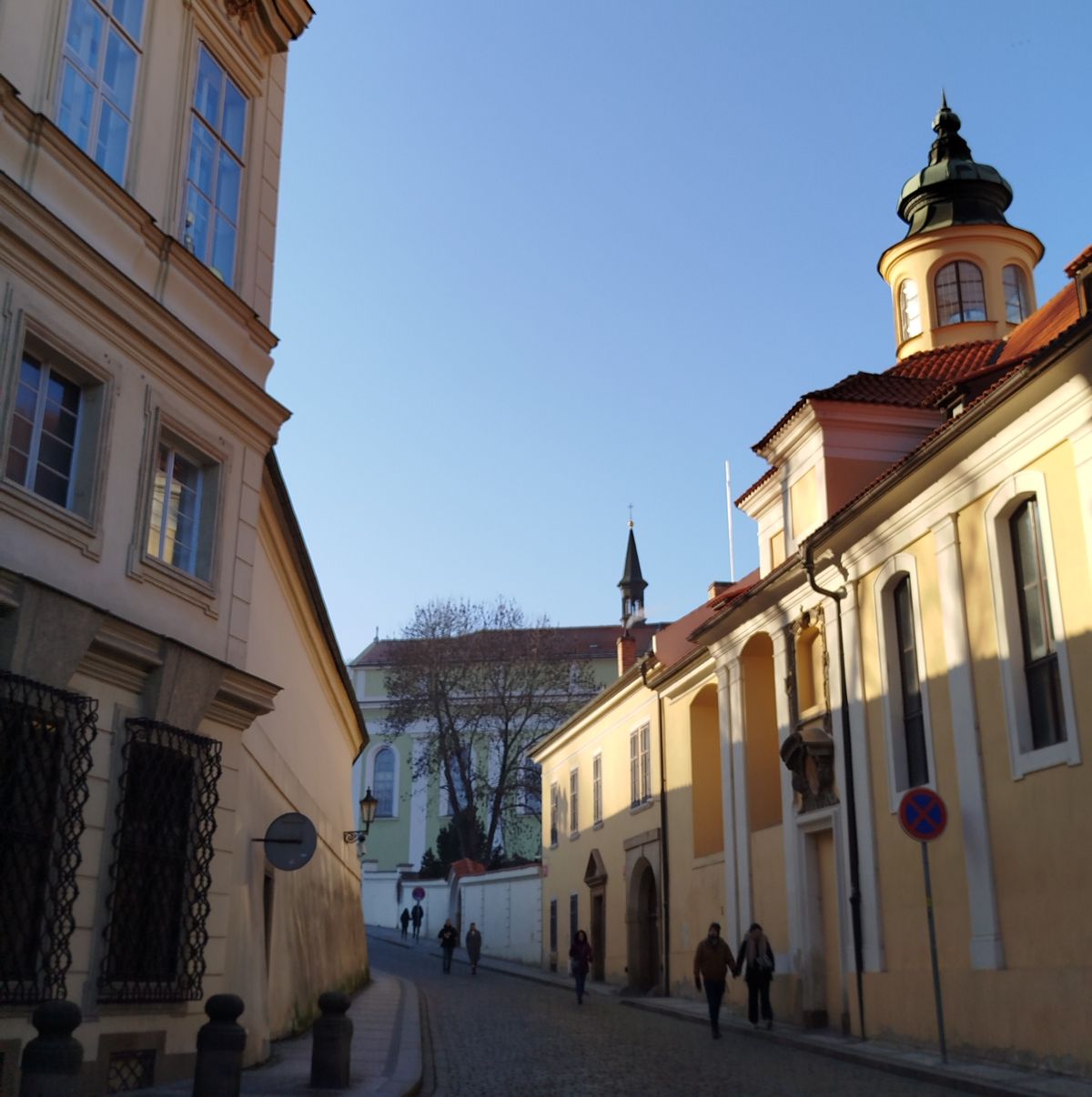Malebná ulice Jánský vršek na Malé Straně nese název po zaniklém kostele, kdysi samostatná osada měla vlastní samosprávu. Vlevo na fotografii je prostor pro dopravu zboží v prudkém svahu, vpravo vedou souběžně schody.