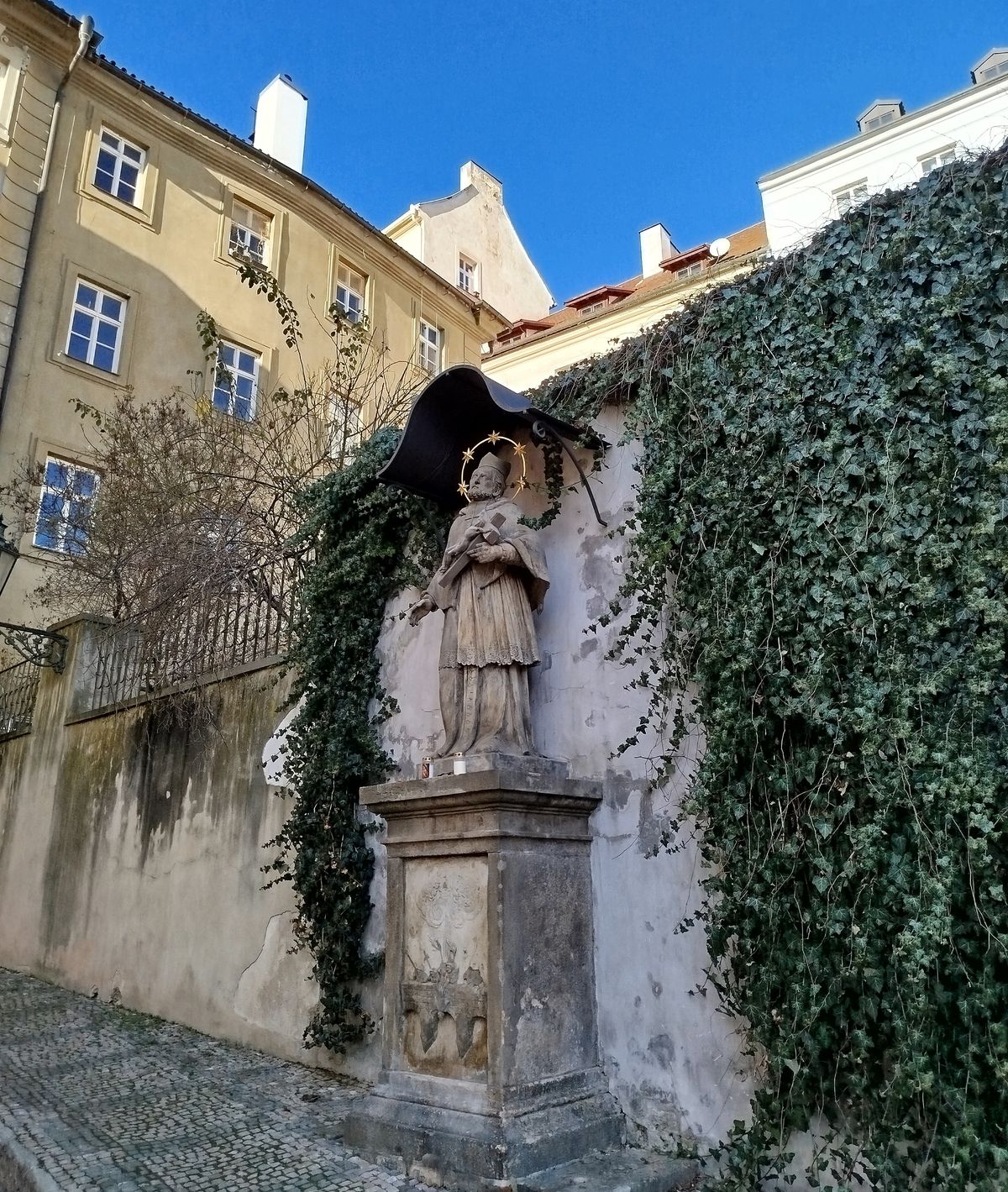 Svatý Jan Nepomucký byl v baroku a klasicismu populární a často umisťován jako strážce u duchovních center. Kdysi se lidé u takových soch krátce zastavili nebo smekli klobouk.