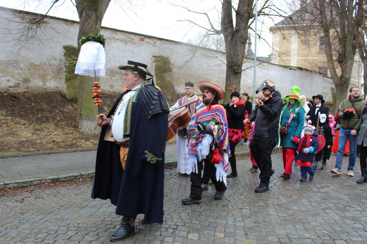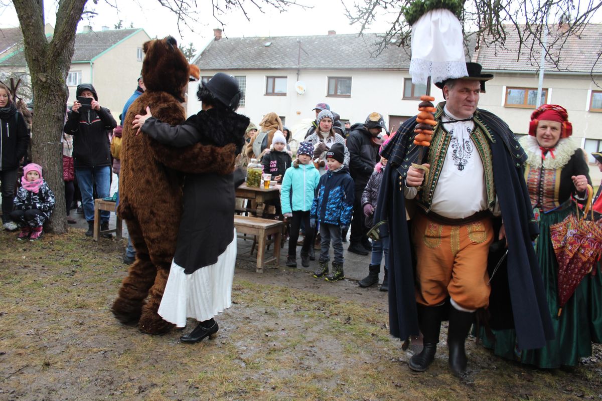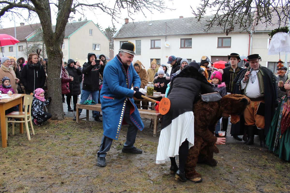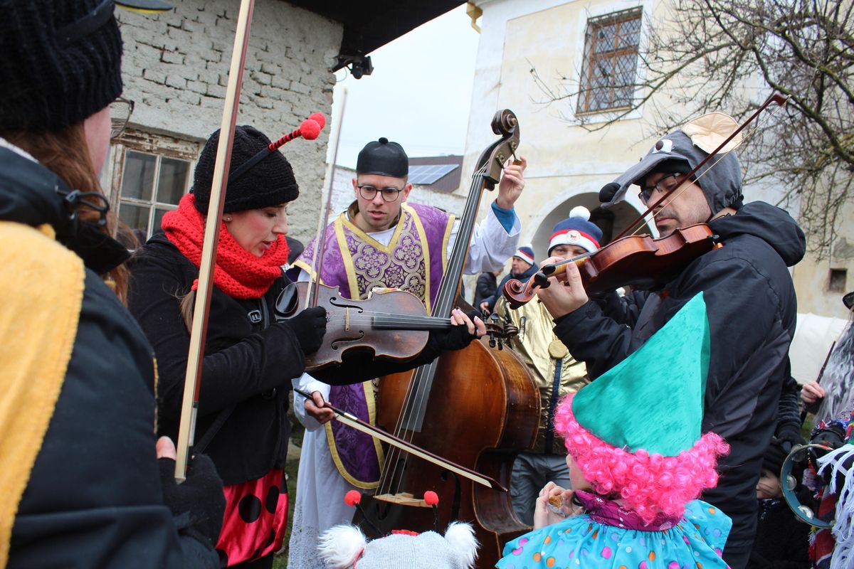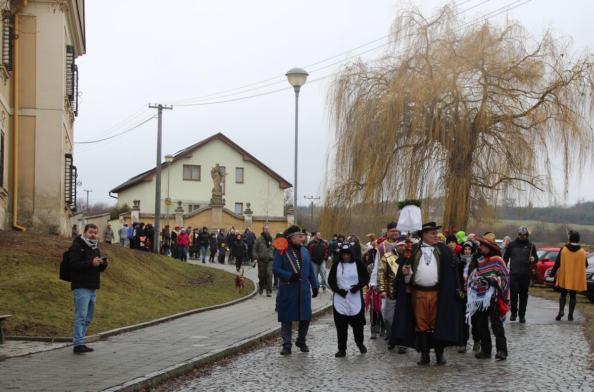 Průvod prošel průjezdem fary a vydal se na cestu vesnicí. Na tak malou vesnici se oslav zúčastnilo velké množství masek i občanů.