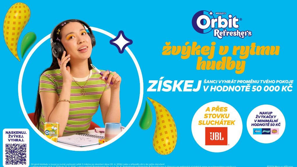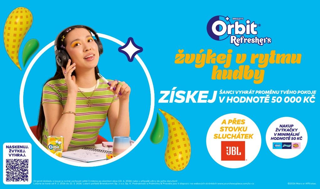 Orbit® Refreshers z portfolia společnosti Mars pořádá pro své zákazníky novou aktivitu, která navazuje na dlouhodobou komunikační strategii značky. Ta vyzývá k soustředění na tady a teď a k hledání drobných každodenních rituálů, jež pomáhají obnovit rovnováhu uprostřed přehlceného světa. V rámci spotřebitelské soutěže „Žvýkej v rytmu hudby“ mohou účastníci vyhrát atraktivní ceny, které jim zajistí pohodlí při práci, odpočinek i relaxaci. Tak budou moct oslavit své vlastní denní tempo. Registrace je možné odesílat do 22. března 2026.