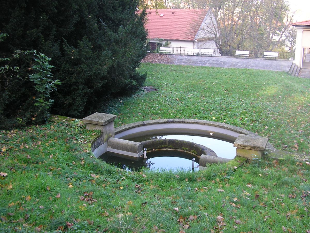 Vila je obklopená zahradou se salou terrenou. V horní partii zahrady je umístěna busta Wolfganga Amadea Mozarta od Tomáše Seidana z roku 1876. Pod bustou lze nalézt malý zahradní bazének lemovaný květinami. V ještě vyšší části zahrady je pak instalován kamenný stůl a lavice, kde údajně Mozart komponoval. Dnešní zahrada, která byla postupem času upravována jako anglický park, je jen pozůstatkem té, která zde bývala v 18. století a která měla užitkový charakter a byla součástí viniční a hospodářské usedlosti. Ta byla plně soběstačná. Podle dochovaných zpráv se zde produkovala zelenina, ovoce i mléko a obilí. Stavení mělo v přízemí rovněž i kravín pro patnáct kusů dobytka a konírnu pro šest koní. Součástí pozemku bylo i kaštanové stromořadí.
