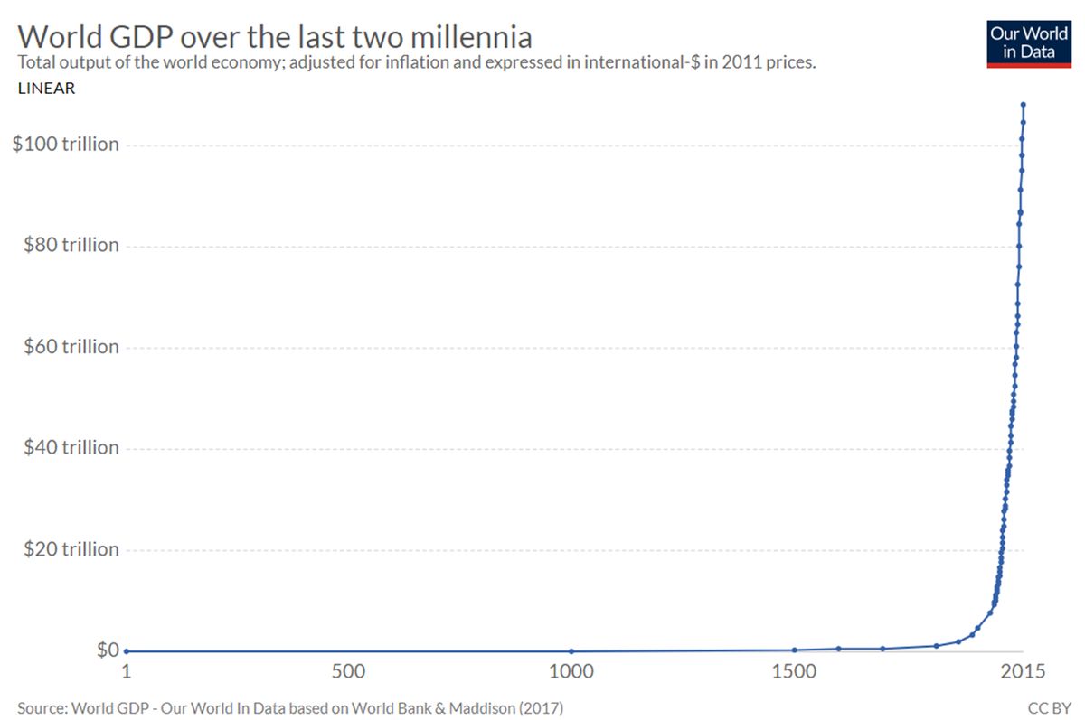 V tom má naprostou pravdu. Většinu světové historie žili lidé v chudobě. To se změnilo až v posledních zhruba dvou stech letech. Proč?