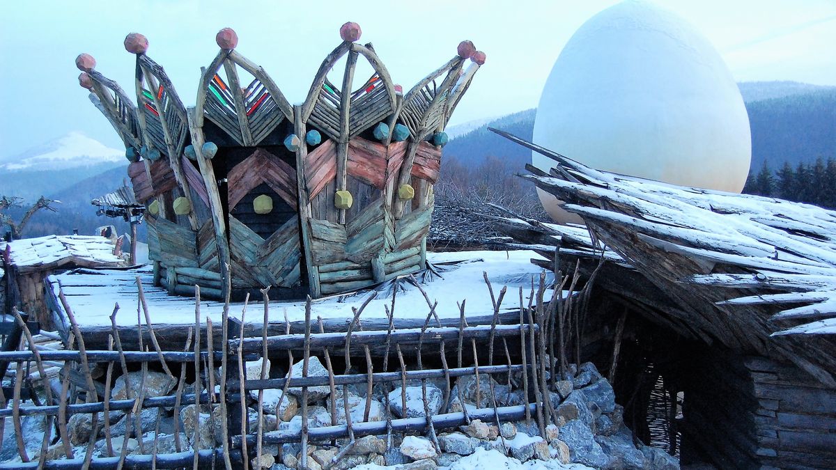 Opravdu přemýšlet o rozdílu mezi slovenskými a českými pohádkami jsem začal o něco později v Donovalech, v pohádkové vesničce Habakuky, plné řezbářských výtvorů inspirovaných pohádkami Pavla Dobšinského. Přijeli jsme pozdě, už se stmívalo, nikde nikdo, pak nám odemkl autor těch pozoruhodných skulptur a v mrazivé zimě nás provedl po svých dílech. Habakuky nejsou skanzen. To je důležité říct hned na začátku. Skanzen se dívá dozadu, zatímco Habakuky se dívají stranou – někam mezi pohádku, sen a dětskou otázku, na kterou dospělí obvykle neumějí odpovědět. Domky jsou schválně nakřivo, okna mají tvar, který by stavební úřad nepřežil. Člověk tu má zvláštní pocit, že se ocitl uvnitř příběhu, který ještě nebyl dopsán. Jako by někdo začal vyprávět slovenskou pohádku, ale pak se rozhodl, že některé věty nechá otevřené. Děti tu běhají s naprostou samozřejmostí, jako by tohle byl jejich přirozený svět. Je to pohádková vesnička, ale bez cukrové polevy. Slovenská v tom nejlepším smyslu slova. Není tu důraz na gag, spíš na atmosféru. I když pohádky od Dobšinského jsem tehdy neznal, věděl jsem, že ta řezbářská fantazie je přesně on, a okouzlen tajuplnými jmény jako Laktibrada, Zlatá Priedka anebo Popolvár jsem si slíbil, že o slovenských pohádkách něco zjistím.