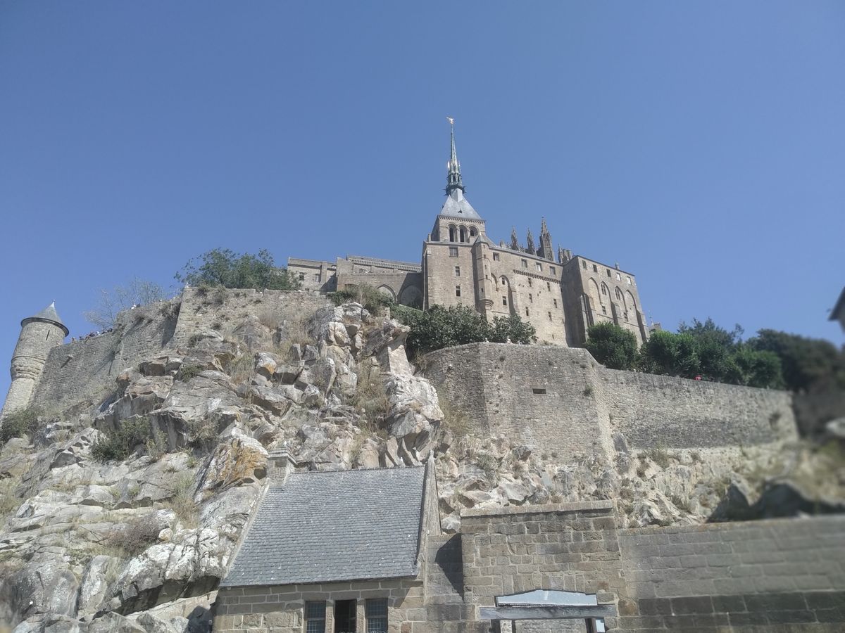 V následujících staletích se z místa stalo poutní centrum, středověká pevnost, a později i vězení. A přesto, nebo právě proto, Mont-Saint-Michel přežil všechno: války, revoluce i nápory turistů. Je to vlastně obraz lidské vytrvalosti – postavit něco tak krásného na místě, které dvakrát denně mizelo pod vodou. Rozdíl výšky mořské hladiny při přílivu a odlivu je tady totiž až 15 metrů, což je nejvíc v Evropě, takže buď je „hora“ obklopena tekutými zvarhánkovatělými písky, nebo prý „plave v moři“, což jsme neviděli, ať už kvůli denní době nebo velkému suchu, přesto ten pocit, že čas se tu měří přílivem a odlivem, a ne hodinami byl velmi intenzivní. Nádech a výdech moře ukazuje i když stojíte na tak skvělé stavbě, kdo je na téhle planetě skutečným pánem.