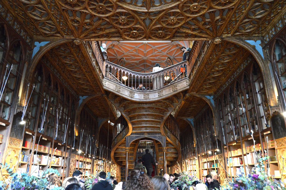 Ráno pršelo, prošli jsme si městské pamětihodnosti a odpoledne, když se trochu vyčasilo se ocitli v srdci Porta. Jen pár kroků od věže Clérigos, se ukrývá snad nejvyhlášenější atrakce města, tedy aspoň pro milovníky knih. Knihkupectví, které se pravidelně objevuje v žebříčcích nejkrásnějších na světě se jmenuje Livraria Lello a je mnohem víc než obchod s knihami – je to zážitek. Jeho sláva ho předchází natolik, že se tu platí vstupné, a i tak je těžké dostat se dovnitř aniž byste si vystáli frontu. Hned vedle interesantní budovy je cedule s návodem, jak si koupit vstupenku přes internet, což se zdá být výhodnější než ji kupovat z pohodlí domova, protože si můžete přesně naplánovat čas. Načetli jsme QR kód a zařadili se na konec dlouhé řady, která se docela rychle pohybovala a celý ten skoro bych řekl moderní rituál jen zvyšoval očekávání ke vstupu do knihkupectví. To bylo otevřeno už v roce 1906 a od té doby se v jeho dřevěných policích a na točitém schodišti střetává historie s kouzlem příběhů. Interiér zdobí vitráže, vyřezávané detaily, balustrády i křivky, které připomínají secesi i gotiku. Knihy jsou všude – portugalské, anglické, klasické, moderní, i ty o Portu samotném. Turisté sem proudí ve velkém i kvůli legendě, že právě tady čerpala inspiraci Rowlingová při psaní Harryho Pottera (když učila angličtinu v Portu). Faktem je, že knihkupectví skutečně vypadá jako z Bradavic. Konečně jsme se v proudu dalších návštěvníku ocitli uvnitř, nasáli okouzlující vůni starých i nových knih a nechali se omráčit interiéry. Připadal jsem si jako kdysi v Sixtinské kapli, jenom s tím rozdílem že tady nebylo zakázáno fotografování, ale naopak se všichni fotili svými mobily, čemuž jsme také neodolali.