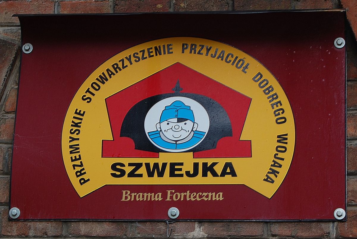 Švejk v Přemyšli to měl těžké – přijel sem jako ruský zajatec odsouzený k smrti oběšením. V jedné z vnitřních tvrzí pevnosti (zřejmě v č. XXI Bakończyce) byl prý držen i on. Stalo se to podle Jaroslava Haška takhle: „Odpůldne Švejk došel k malému rybníku, kde se setkal s jedním uprchlým ruským zajatcem, který se tu koupal a při spatření Švejka dal se nahý, jak vylezl z vody, na útěk. Švejk byl zvědav, jak asi by mu slušela ruská uniforma, která se zde válela pod vrbičkami, svlékl svou a oblékl si ruskou uniformu nešťastného nahého zajatce, který utekl od transportu, ubytovaného ve vesnici za lesem. Švejk přál si, aby sebe viděl důkladně zrcadlit ve vodě, proto chodil tak dlouho po hrázi rybníka, až ho tam našla patrola polního četnictva, která hledala ruského zběha.“