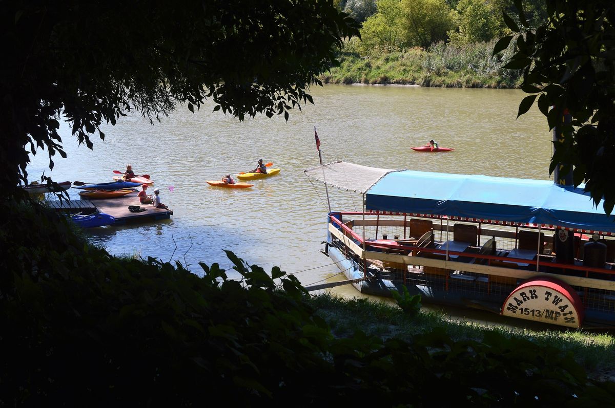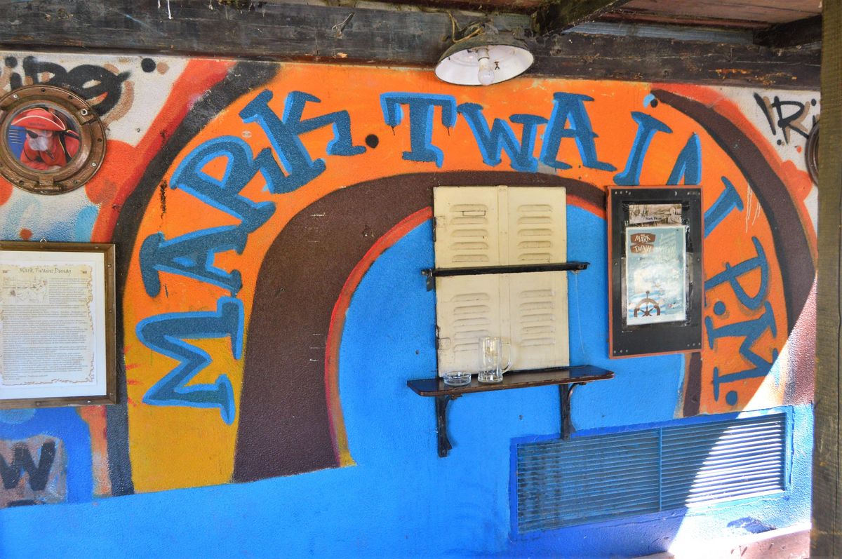 Projeli jsme pod mostem SNP, z druhé strany Dunaje míjeli bratislavský hrad. Pluli jsme k Devínu, tedy proti proudu, takže dost pomalu, a byl jeden z těch dní, kdy padají teplotní rekordy. Vzhledem k pomalosti plavby se ochlazující vítr ve vlasech nekonal, naopak jsem si utíral z čela pot, který se tam vyrazil po příliš rychle vypitém a příliš studeném pivu z plechovky. A fotil rychlé motorové čluny, které nás předjížděly anebo obří často zahraniční spíš pojízdné restaurace než lodě, které nás míjely. Užíval jsem si, že jsem aspoň na chvíli součástí té slovenské mohutnosti, jako třeba v Tatrách. Když jsme projížděli kolem jakéhosi slepého ramena, které bylo plné vodáků v barevných kánoích a místy se tu lidé i koupali, byl jsem upozorněn, že je to skvělý tip na výlet: Je tu restaurace, jmenuje se Mark Twain, je to asi půl hodiny pěšky od centra promenádou pro cyklisty a pěší podél Dunaje. Potkávají se prý na tomhle místě pojmenovaném po americkém spisovateli právníci i pijáci borovičky a panuje tu pohodová atmosféra. Ta byla cítit na dálku, tak jsem se tam jednoho dne vypravil, a i když restaurace, nebo spíš bistro bylo zavřené, nelitoval jsem. Takhle fotogenické místo jsem na Dunaji v Bratislavě předtím ani potom nenašel. Parkoval tu na vodě mini škuner jako někde na Mississippi a jako bonus jsem si přečetl cimrmanovskou historku o tom, jak se tu kdysi prý Mark Twain topil v Dunaji, protože podcenil sílu proudu. Zachránili ho ale místní rybáři, kteří ho pak i obehráli v kartách a za vyhrané peníze tu postavili pontonovou letní krčmu, která funguje dodnes.