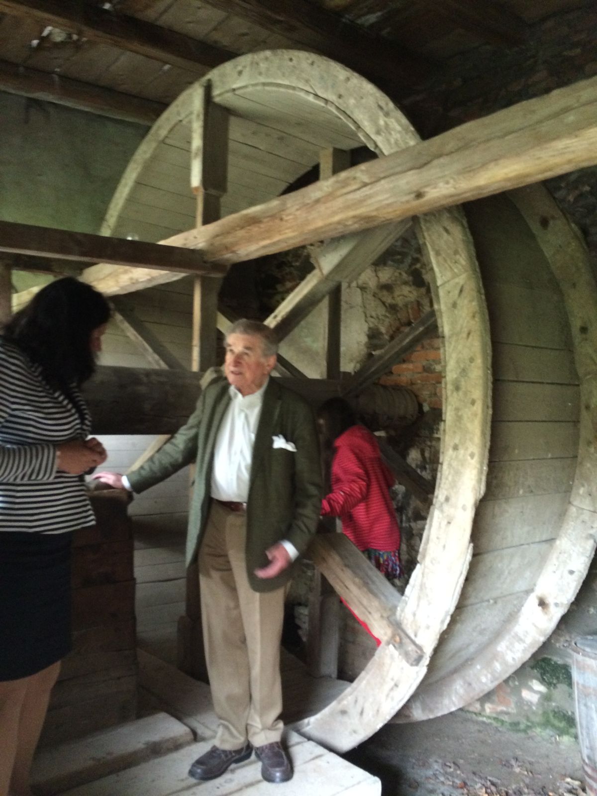 Hugo hrabě Mensdorff-Pouilly u studničního šlapacího kola (16. stol.) - Boskovice (2014).