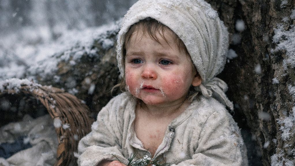 „Mezi kořeny smrku ležela na tenké peřince docela malá holčička. Měla rozhalenou košilku a na hlavě čepeček. Její dlaně bezmocně tiskly hrst zasněženého jehličí. U úst měla krupičky zmrzlých slin. Plakala stále tišeji, přerývaně. Byla promodralá zimou,“ popsal tuto událost v životopisné knize o Těsnohlídkovi „Jsem vánočnímu stromu podoben“ spisovatel František Kožík.