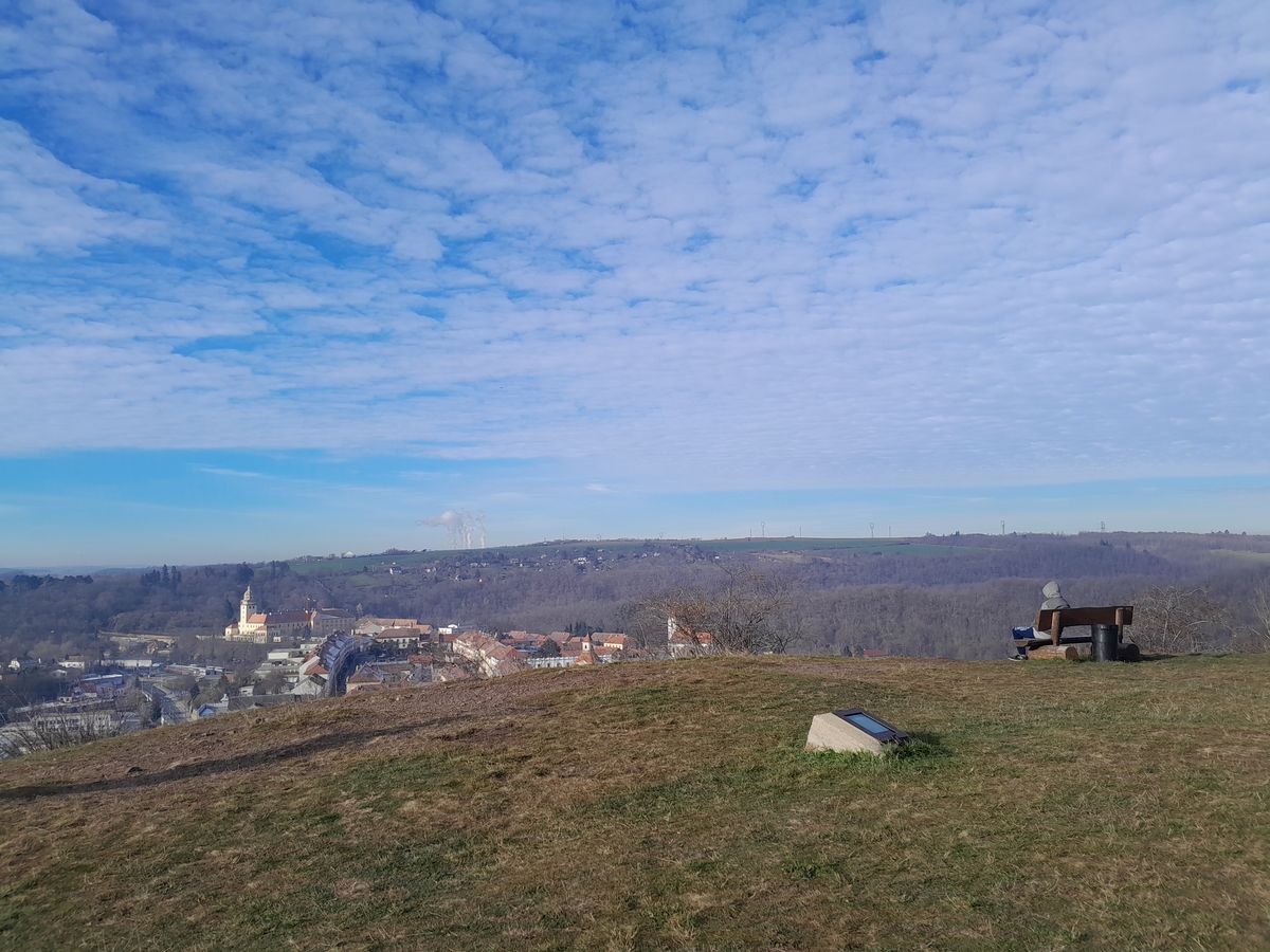 Pohled z kopce Floriánek na Moravský Krumlov. Právě na okraji tohoto srázu se dle pověsti zastavili koně s knížetem Antonínem Floriánem z Lichtenštejna.