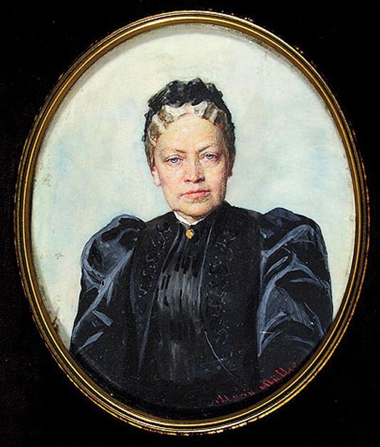 Portrét Marie von Ebner Eschenbachové z roku 1891. V roce 1898 byla tato spisovatelka vyznamenána nejvyšším civilním oceněním Rakouska-Uherska, a to čestným křížem za umění a literaturu. V roce 1900 obdržela jako vůbec první žena čestný doktorát Vídeňské univerzity.