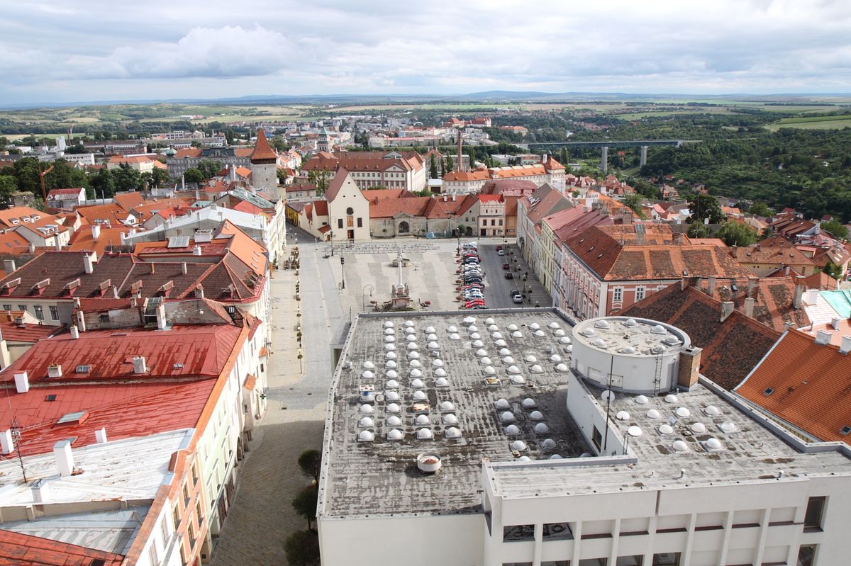 Pohled z Radniční věže na OD Dyje není opravdu nijak líbivý.