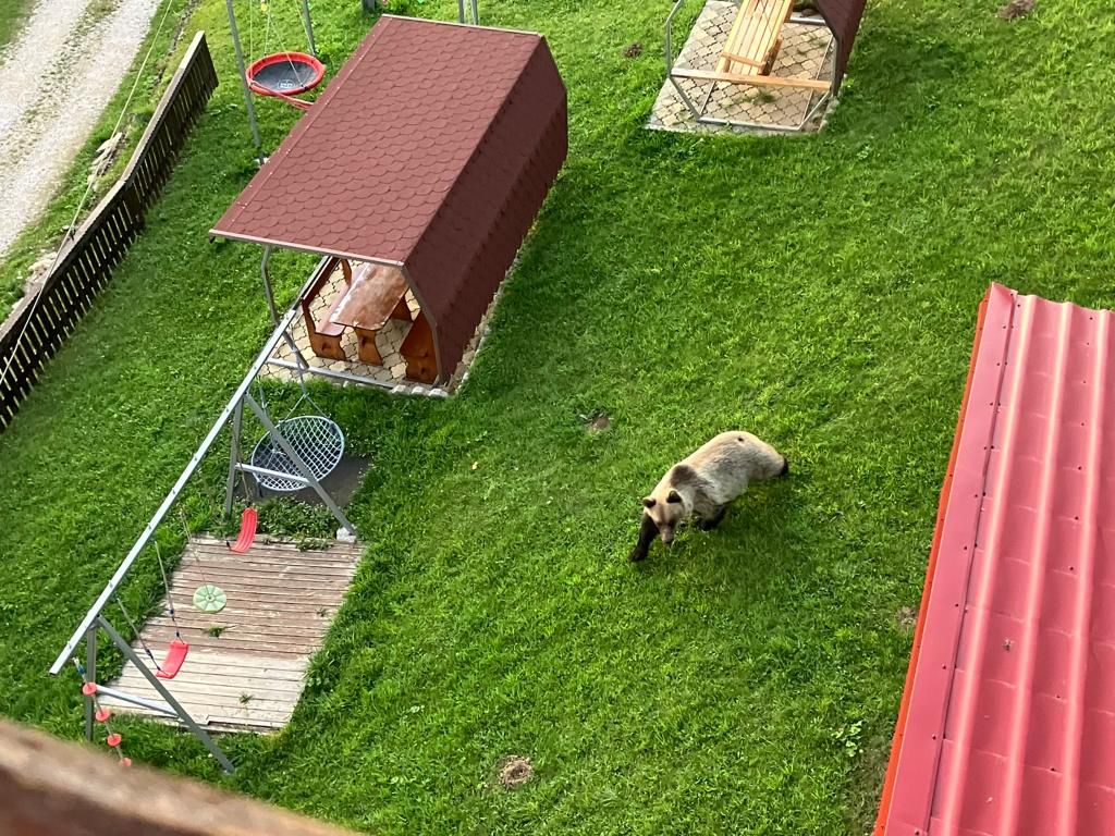 Tuto fotku medvěda hnědého, který ztratil plachost, pořídil turista na zahradě penzionu v Rumunsku.