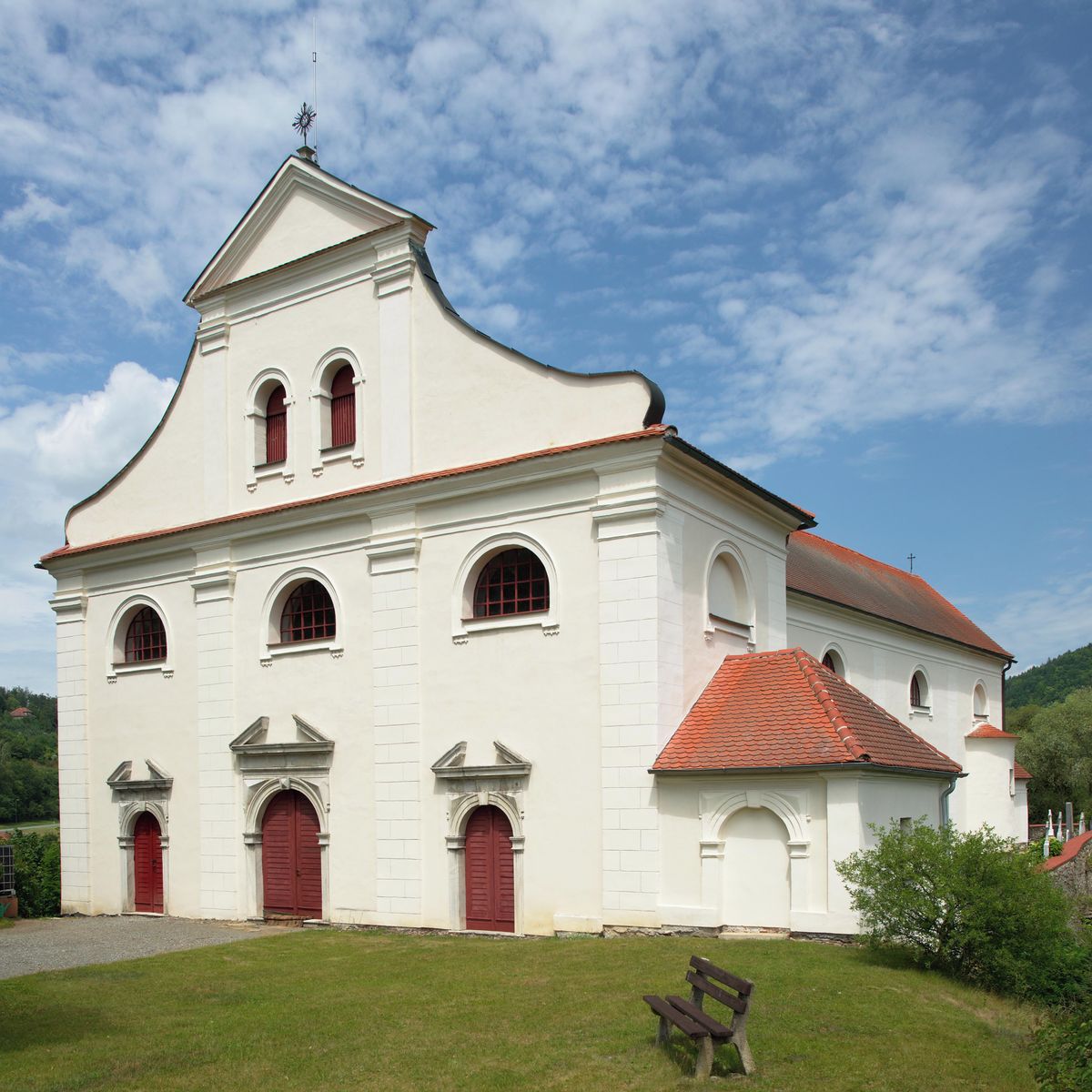 Tento kostel vznikl v pozdně románské podobě začátkem 13. století. Z jeho nejstarší fáze se dochovala část zdiva, především jižní zeď lodi a několik nároží. Před západním průčelím stála románská věž. Po požáru ve druhé čtvrtině 14. století došlo ke gotické přestavbě. V návaznosti na původní jižní zeď vznikla širší loď a pravoúhlé kněžiště. K severní straně presbytáře byla později, snad ještě ve 14. století, přistavěna sakristie s věžovitou nástavbou. Z poloviny 18. století existovalo několik plánů na radikální barokní přestavbu, nakonec se z nich realizovala pouze věž nad sakristií, datovaná do období mezi roky 1758 a 1771. Nahradila původní románskou věž v průčelí, která byla zbořena. V této době se také zbarokizoval interiér a loď dostala valenou klenbu.