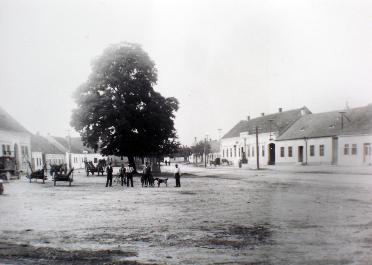 Mušovská náves na předválečné fotografii.