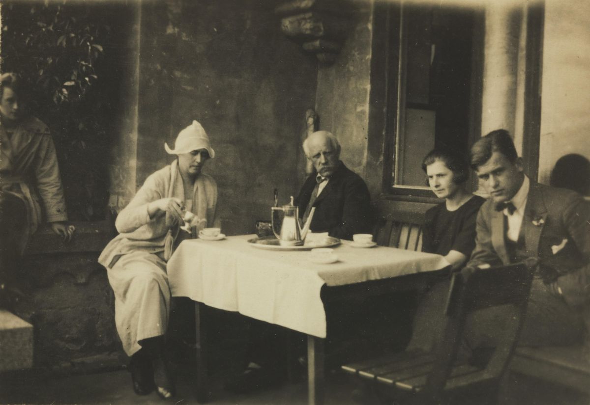 Norský architekt Odd Nansen (zcela vpravo) na fotografii z roku 1927 se svou manželkou Kari a svými rodiči.