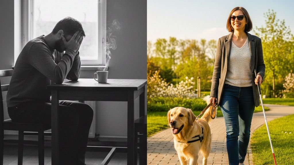 Zpracování emocí – ztráta zraku často vyvolává fáze podobné truchlení: šok, popření, hněv, smutek až po postupné smíření. U každého je to individuálně dlouhé a náročné, když se jedná třeba o návštěvy psychologa či nejprve si připustit to, že by člověk chtěl, aby mu někdo pomohl a rozhodne se pomoc vyhledat.