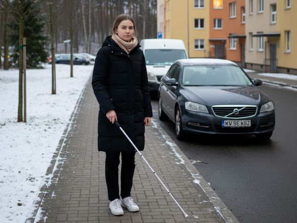 2. Signalizační bílá hůl – používá se s průvodcem nebo při chůzi s vodicím psem, signalizuje, že má člověk zrakové postižení. Lidé ji většinou využívají právě proto, aby upozornili, že špatně vidí, a tak k nim okolí bylo ohleduplné. Zrovna tak díky ní můžeme dát signál, že budeme vstupovat do vozovky, a tak upozorníme účastníky silničního provozu, že máme problém se zrakem, aby s tím okolí počítalo.