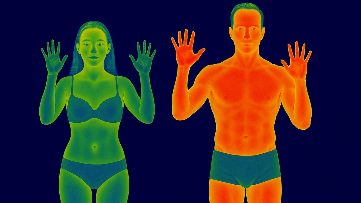 Rozdíl není v tom, že by ženy byly zimomřivé. Rozdíl je v těle. Muž má víc svalové hmoty, která funguje jako přirozené topení. I když sedí a nic nedělá, svaly pomalu vyrábějí teplo. Ženské tělo má svalů méně, a tak i méně třetin tepla.