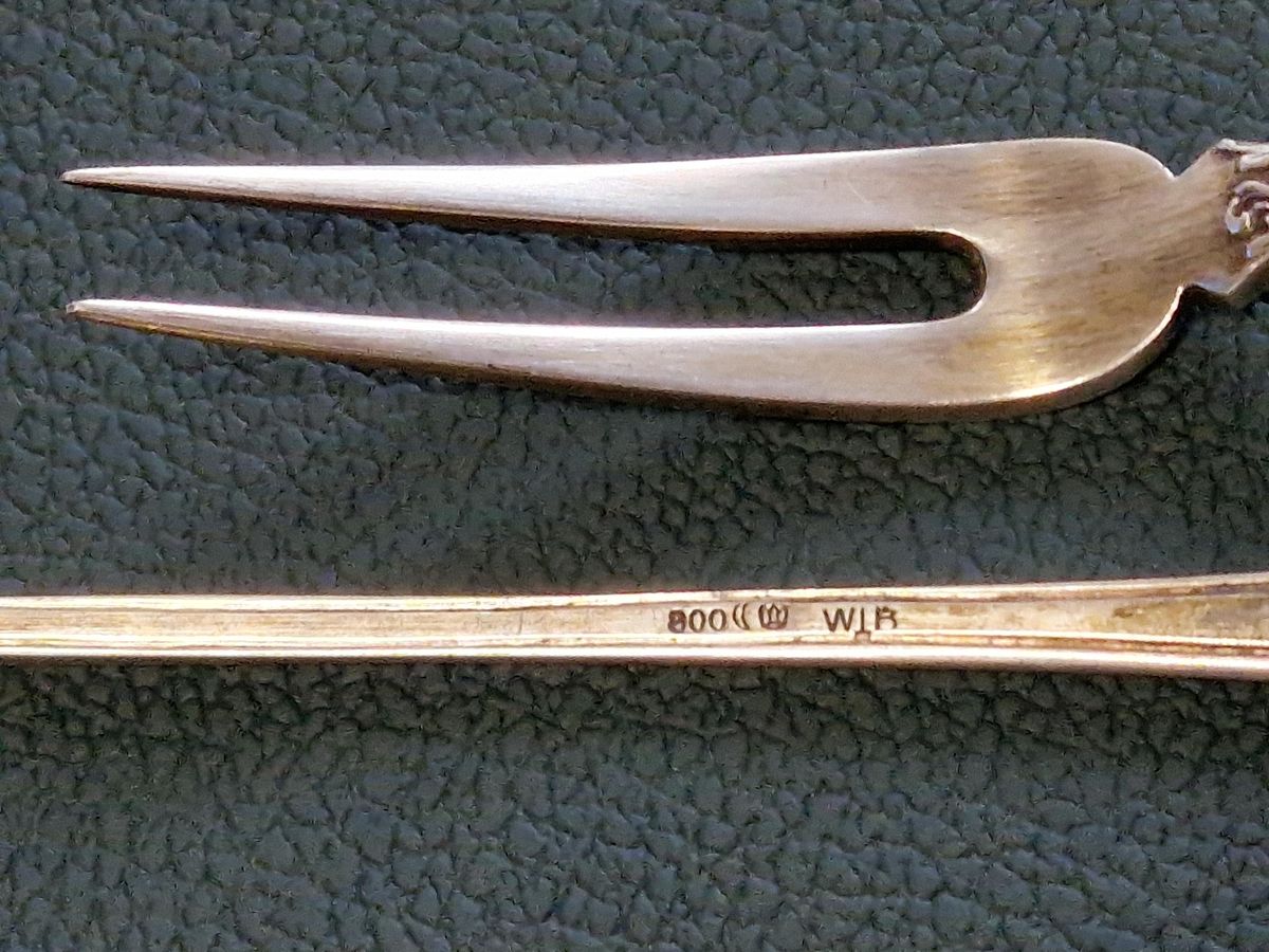 Dnes přede mě rozložil pár prstýnků — nic, co by mě zvedlo ze židle — a pak vytáhl dvě starožitné stříbrné vidličky s puncem 800.