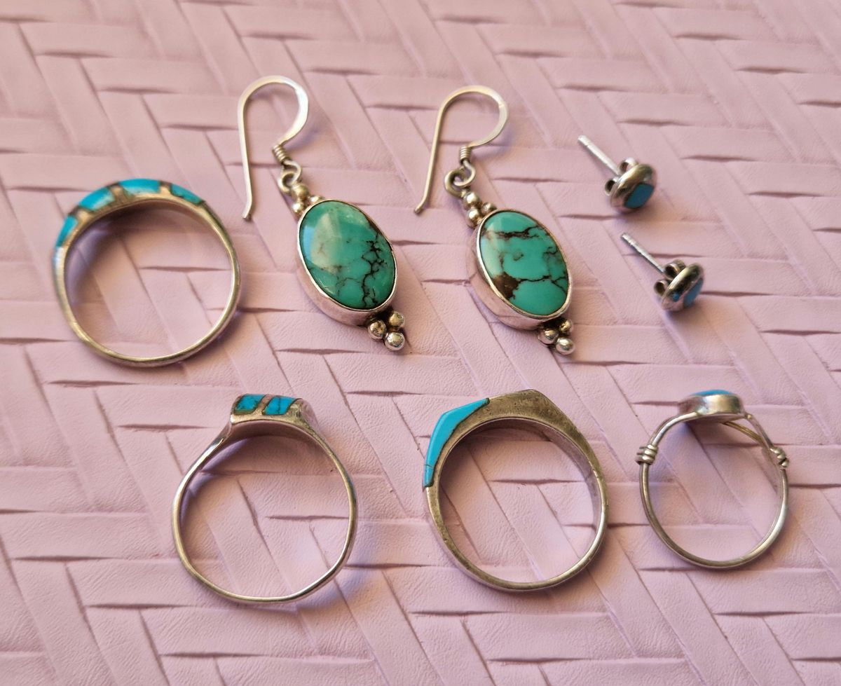 Tentokrát na stole leží zipový sáček. Už z dálky, jedním okem, jsem viděl, že tohle bude stříbro. Nemusel jsem ani vytahovat lupu. A měl jsem pravdu: celý set prstenů a náušnic s tyrkysem, punc 925. Cena? Padesát korun. To si říká o „do kapsy s tím a tvářit se nenápadně“.