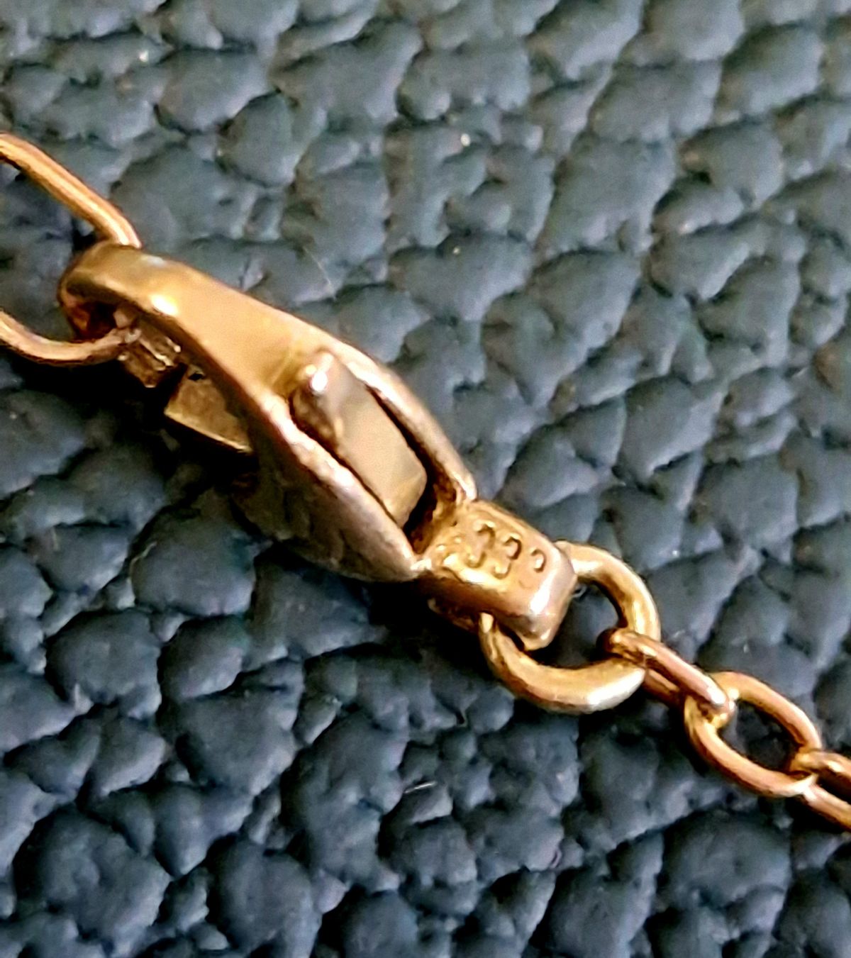 Jenže opravdový jackpot dne přišel, když jsem zabloudil k pultíku, kde jsem snad nikdy nic nekoupil. Na stole krabička od sběratelských karet Fortnite. Vezmu ji, zatřesu – cinkne bižuterie. Říkám si: „Proč ne…“ (no dobře, kecám, já bych se v tom hrabal i kdyby tam byly šroubky). A hele – řetízek. Už z dálky jiný odstín. Mrknu na zapínání – a tam krásně vyražené 333. Osmikarátové zlato!