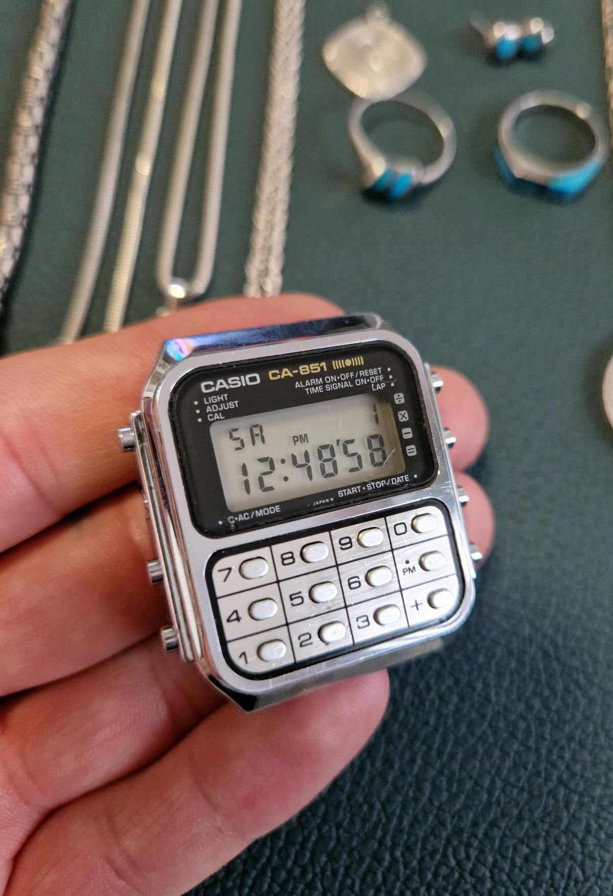 No a pak přišel moment, kdy jsem si připadal jak Indiana Jones mezi šperkovnicemi. U jednoho pána vyhrabu starou minci a pár stříbrných zlomků. Po očištění se z mince vyklubala říšská dvoumarka z roku 1938. K tomu ještě retro digitálky Casio – s kalkulačkou! Prodavač tvrdí, že fungují. Jo, jasně, bez baterky… Ale risknul jsem to za 300 Kč. Přihodil jsem ještě pár drobností a za 600 jsem odcházel se stříbrem a nefunkčními „děly“.