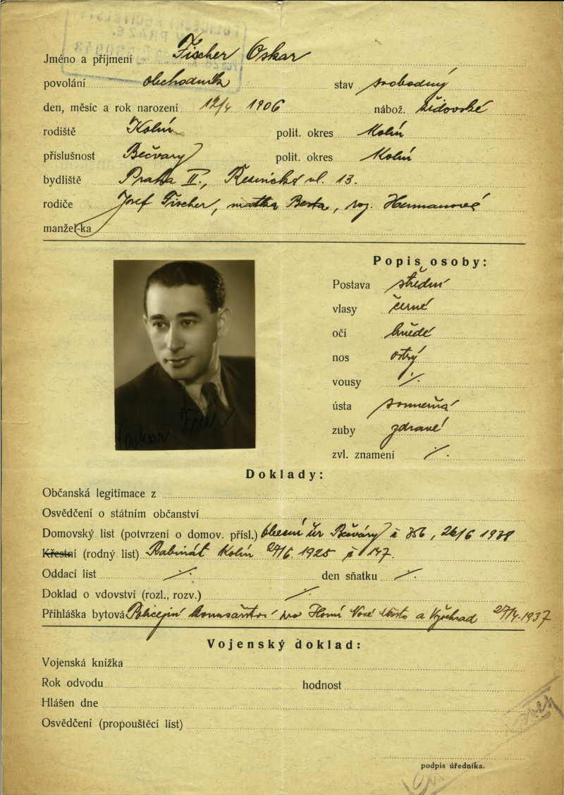 Fischer Oskar: Žádost o vydání občanské legitimace