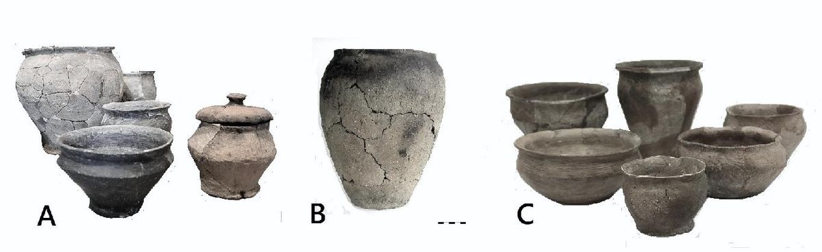 A-vandalská keramika, B- k. s keramikou pražského typu, C- kultura Tornow (Veleti)
