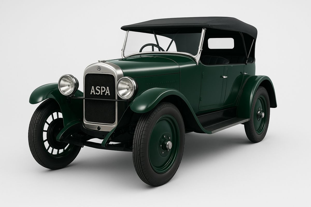 Vizualice vozu ASPA 5-15 HP 1327ccm z roku 1924 vytvořená pomocí AI z dostupné dokumentace