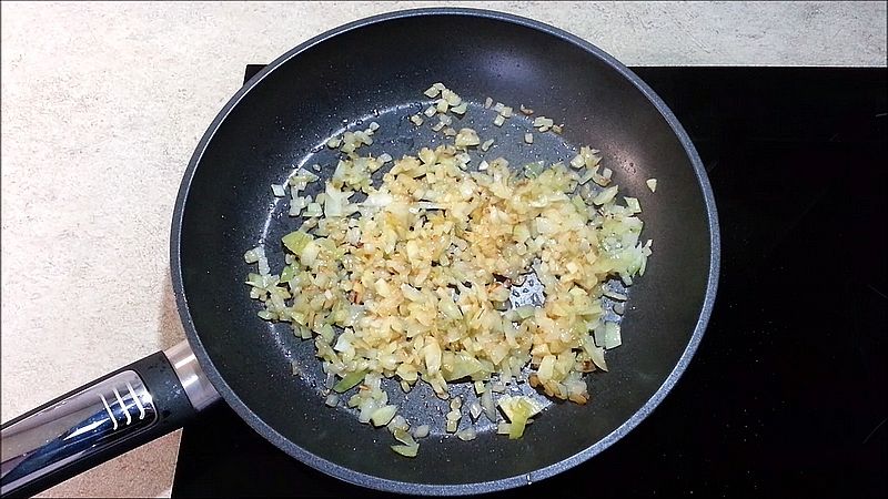 Poté dáme knedlík stranou a na oleji orestujeme dvě nakrájené cibule nadrobno.