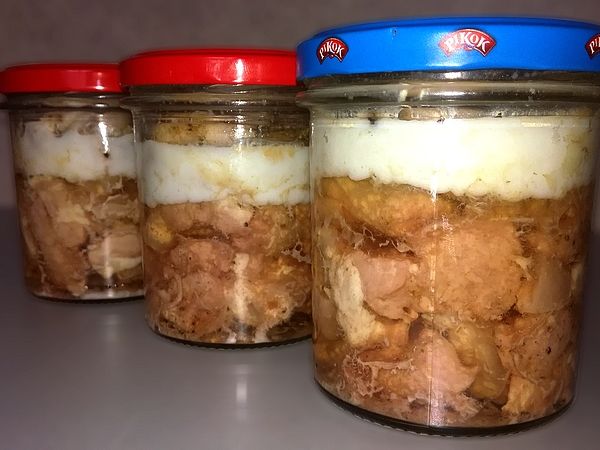 Poté přidáme 1 lžičku sušené majoránky, 7 prolisovaných stroužků česneku, 2 vejce a vaříme brambory doměkka ještě cca 5 minut. Nakonec popřípadě polévku dosolíme.
