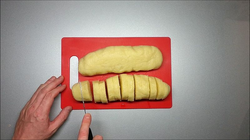 Po uvaření knedlíky ihned podáváme nakrájené jako přílohu například k masu.