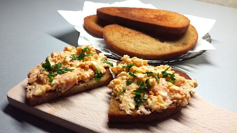 Na sádle nebo oleji osmažíme krajíce chleba a potřeme česnekem.