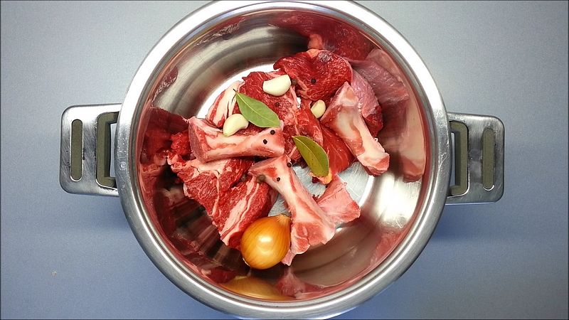 - 0,8 kg hovězí maso přední a kosti