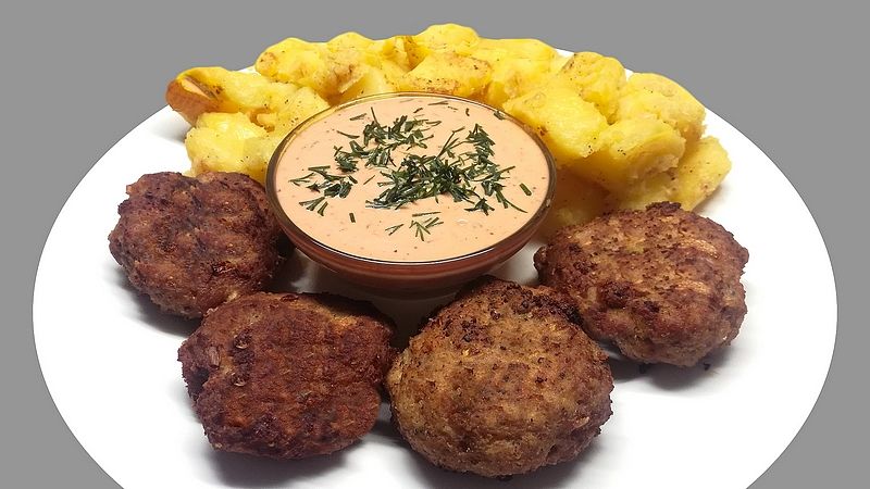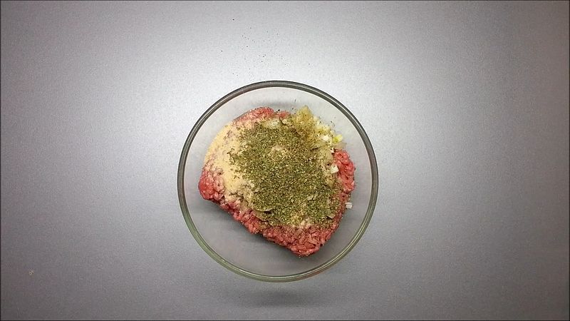 K 500 g mletého masa přidáme 1 nakrájenou cibuli nadrobno, 1 lžičku soli, 5 stroužků prolisovaného česneku, trochu pepře, 1 vejce, 1 lžíci strouhanky, 2 lžičky majoránky, 1 lžíci plnotučné hořčice a vše důkladně promícháme.