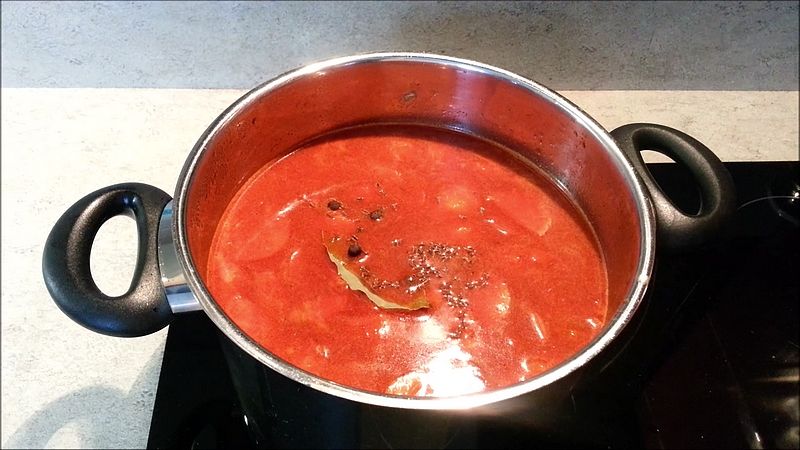 Na zahuštění důkladně rozmícháme 200 ml vody a 2 lžíce hladké mouky. Směs nalijeme ke konci do omáčky, přidáme 2 lžičky majoránky a 4 stroužky prolisovaného česneku a ještě alespoň 10 minut převaříme. Popřípadě guláš dochutíme solí.