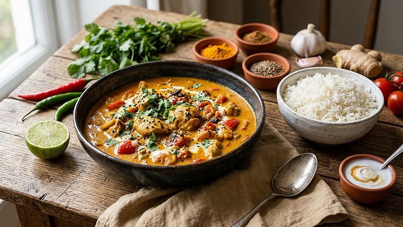 7. Dochucení a podávání Přidejte citronovou šťávu, dosolte a dolaďte koření podle chuti. Podávejte na talíři s nadýchanou basmati rýží a posypte čerstvě nasekaným koriandrem.