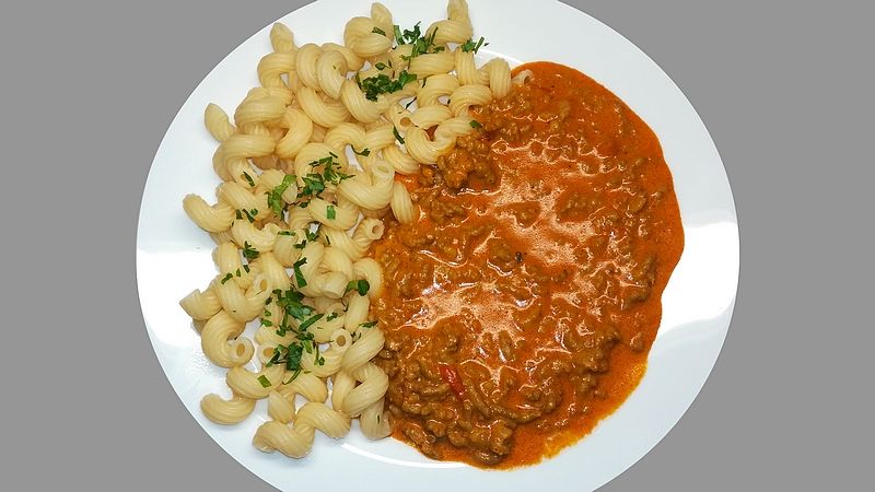 Cibuli osmažíme na oleji a poté přidáme mleté maso, které vařečkou rozdělíme na menší části a důkladně osmažíme.