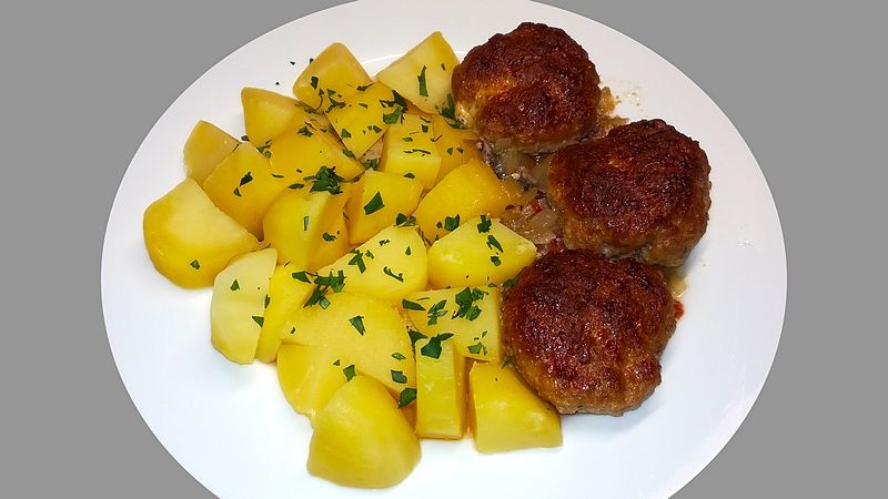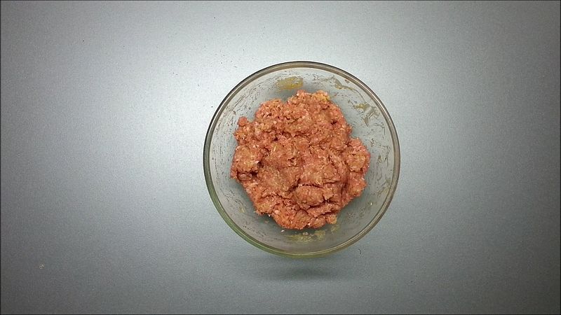 Důkladně promícháme 500 g mletého masa (hovězí, vepřové nebo mix), 3 stroužky prolisovaného česneku, 1 lžičku soli, pepř, 1 lžíci plnotučné hořčice, 1 vejce a 2 lžíce strouhanky.