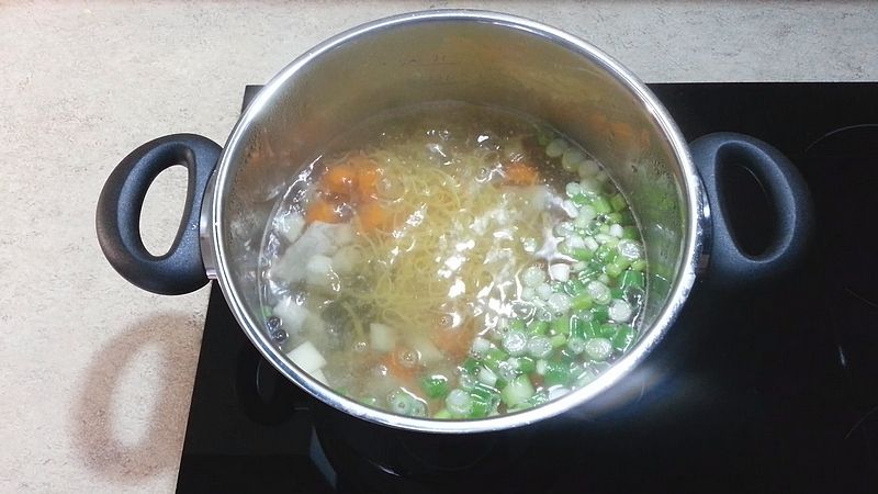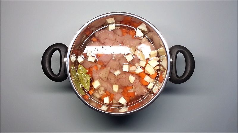 Polévku dáme vařit a vaříme od bodu varu 30 minut. Pokud se vytvoří na povrchu pěna tak jí sebereme.