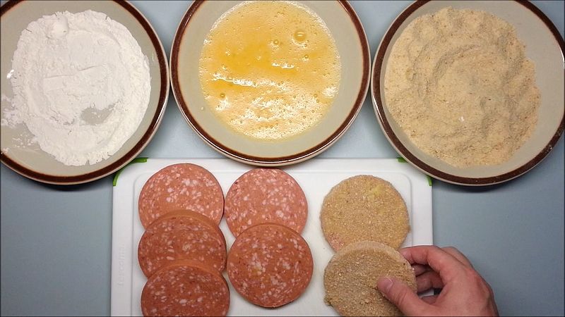 Gothaj nakrájíme na plátky 1 – 1,5 cm široké. Poté gothaj obalíme v hladké mouce, v rozmíchaném vejci a nakonec ve strouhance.