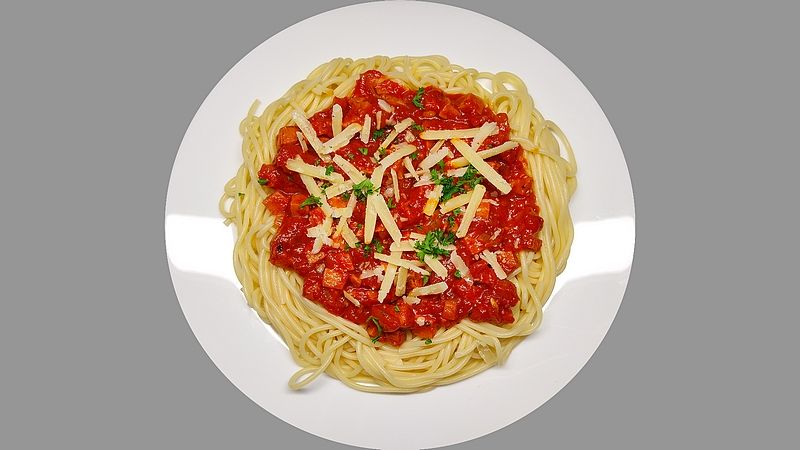 Při servírování špagety posypeme nakrájeným sýrem a petrželkou.