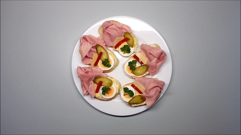 Na sýr přidáme nakrájené vejce vařené natvrdo, kyselou okurku, sterilovanou kapii, a petržel kudrnku. Můžeme podávat.