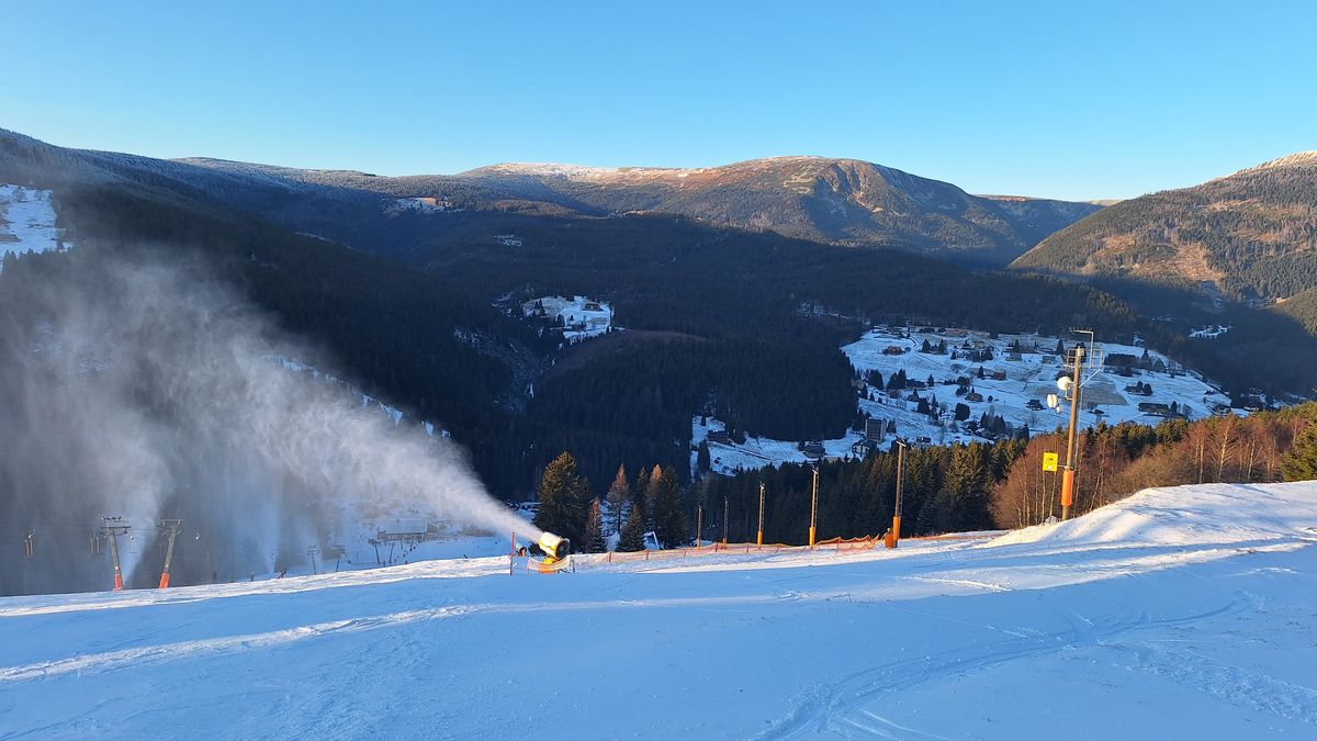 V Peci pod Sněžkou je momentálně v provozu přes 6,7 km upravených sjezdovek. Lyžování si užijete od 8:30 do 16:00, přičemž v Peci je pro návštěvníky do 3. ledna také večerní lyžování na sjezdovce Javor v čase 18:00–21:00 a večerní bobování v LIVE parku Javor v čase 17:00–19:00. V provozu jsou lanovky Zahrádky Express, Hnědý vrch a vleky Javor, Smrk a Javořák, dále pak výukové části pro začátečníky.