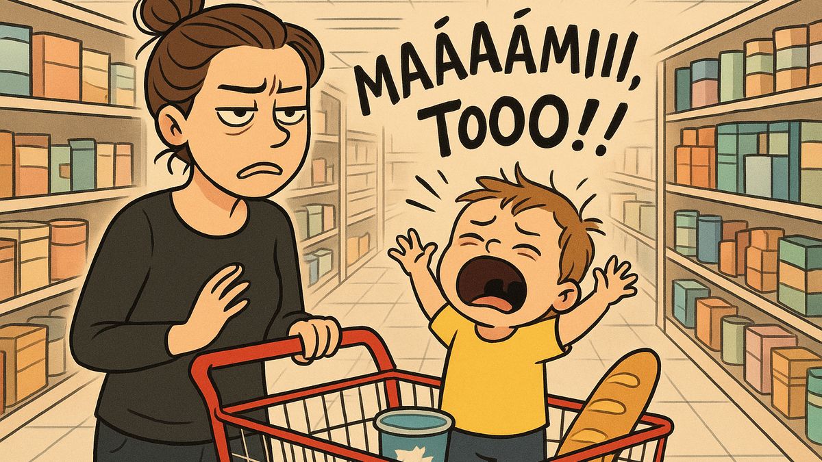 Vrchol expedice přichází u pokladny. Fronta se nehýbe. Dítě se hýbe. Dítě se hýbe hodně. Dítě se rozhoduje, že teď je ideální čas cvičit breakdance. Pokladní se směje. Ale ne očima. Důchodce v řadě za vámi demonstrativně vzdychá. Vedle stojící influencerka natáčí „raw motherhood moment“. Já držím tři rohlíky, jogurt zničený emocionálně i vizuálně, a přemýšlím, jestli by se dalo odejít jen tak. Prostě bez placení. Bez identity. Bez svědomí.