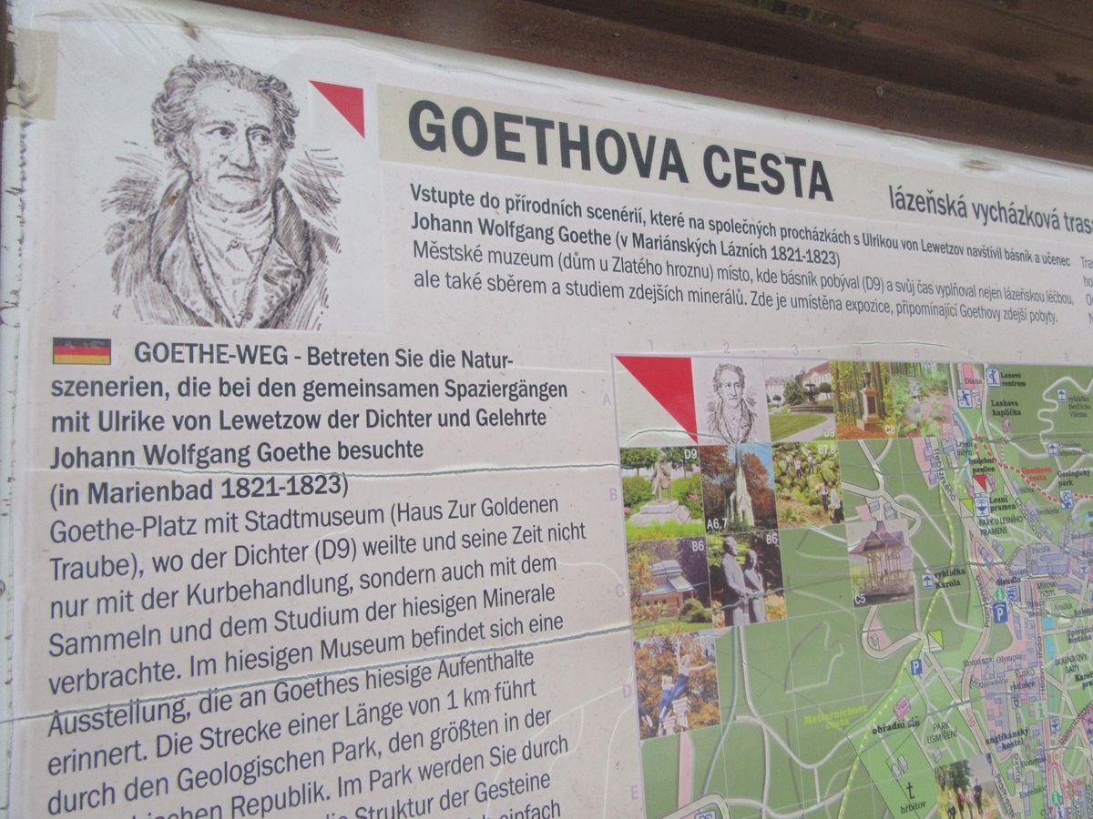Poutač na Goethovu cestu v Mariánských Lázních
