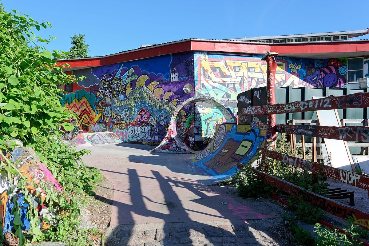 Zákoutí svobodné Christianie překypují množstvím absurdních stavbiček vyzdobených graffiti, Foto: Wikimedia Commons / volné dílo