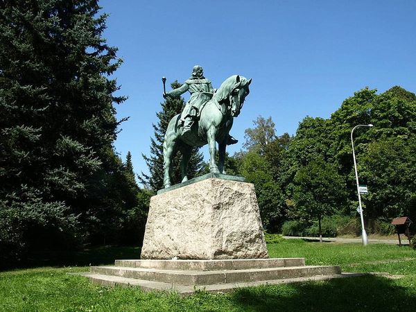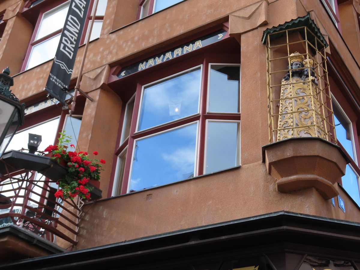 Barokní soška ve zlaté kleci přenesená na nároží už z původního objektu většině procházejících neunikne. Nyní tam stojí její vyřezávaná kopie