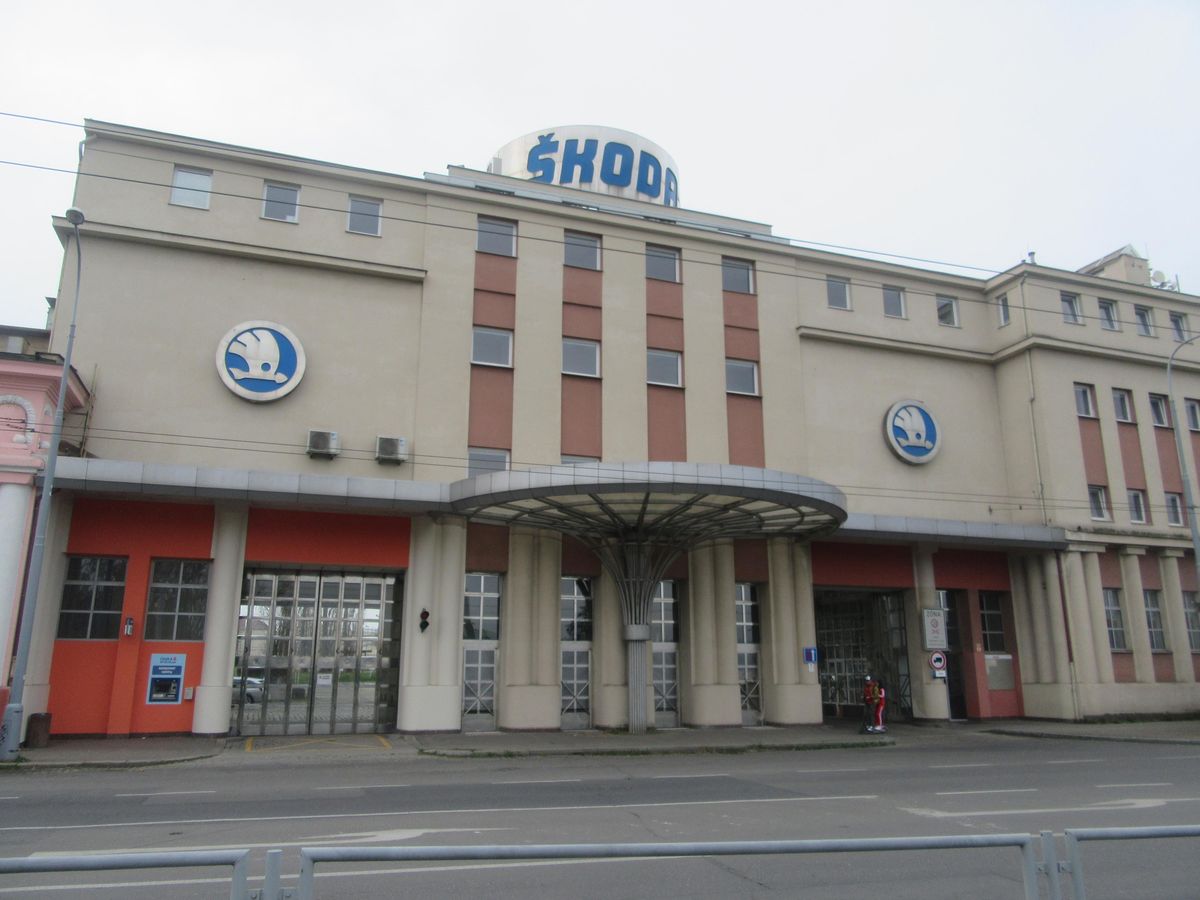 Hlavní vstup do areálu Škoda je v současné době na stejném místě jako během bombardování za druhé světové války